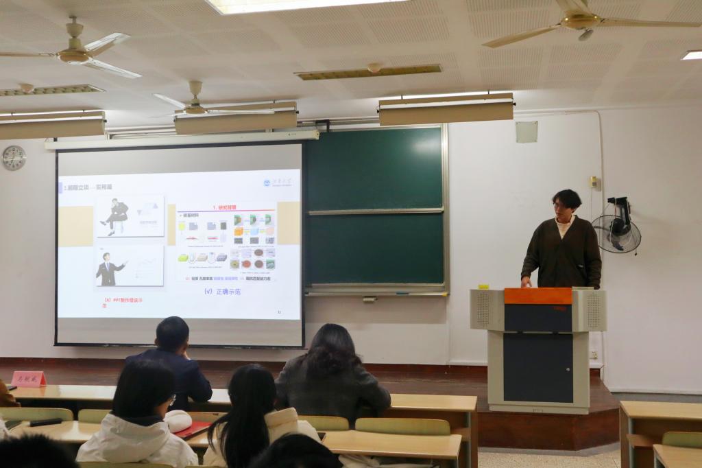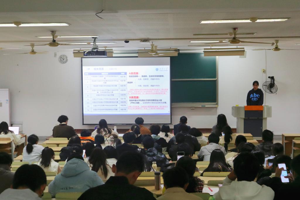 胡志伟分享了大创项目前中期的经验。他从大创简介、前期立项、中期工作及检查等三部分细致地讲解了大创的立项思路,并结合自身的科研经历,分享了自己在研究过程中的成长与突破。张艺子涵以大创后期工作为主线,叙述了结项、竞赛、收获等三方面内容。她展示了结项工作的申请流程,相关的竞赛及参加这些竞赛的心得。她表示,竞赛项目需要反复精雕细磨,精益求精,并要学会融合团队智慧,为项目注入活力。刘欣主要介绍了竞赛的分类及方法。她分析了各类竞赛的优缺点及需要做的前期努力。她通过个人经历生动讲述了竞赛准备工作的相关事宜。