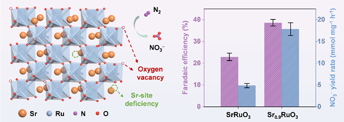 Sr0.9RuO3的结构示意图及其电催化氮气氧化合成硝酸盐性能