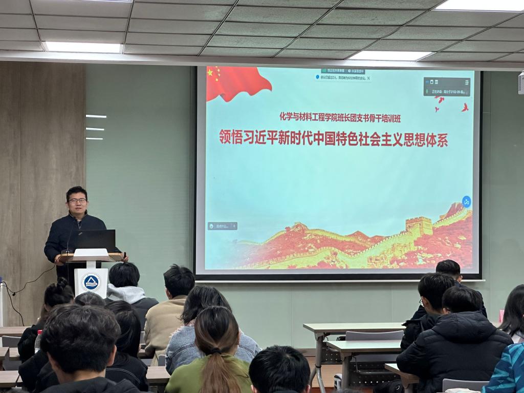 为深入学习贯彻习近平新时代中国特色社会主义思想,进一步提升学院基层团学干部的理论素养和实践能力,化学与材料工程学院于11月22日召开班长团支书工作例会。会议设置蠡湖和东氿两个会场,马克思主义学院专任教师巩建青、学院分团委书记鞠峰、各班级班长、团支书及分团委部门负责人参加会议,会议由鞠峰主持。