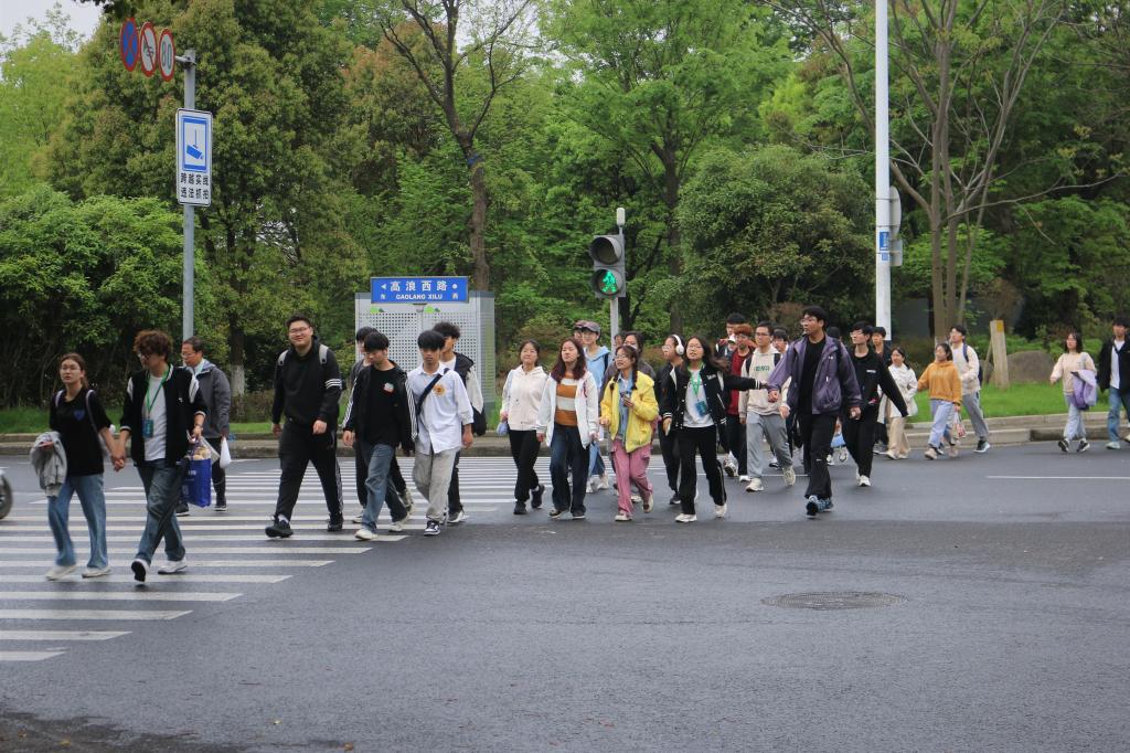 本次拉练全程大约20公里,设3个休息点,途径江南大学南门、无锡长广溪国家湿地公园、蠡湖中央公园、蠡湖大桥公园,最终返回江南大学,沿湖徒步欣赏蠡湖美景和江南春日风光。14日清晨,侯玉莹向参与学生介绍本次毅行拉练的路线和注意事项后,同学们按组列队,有序前行。