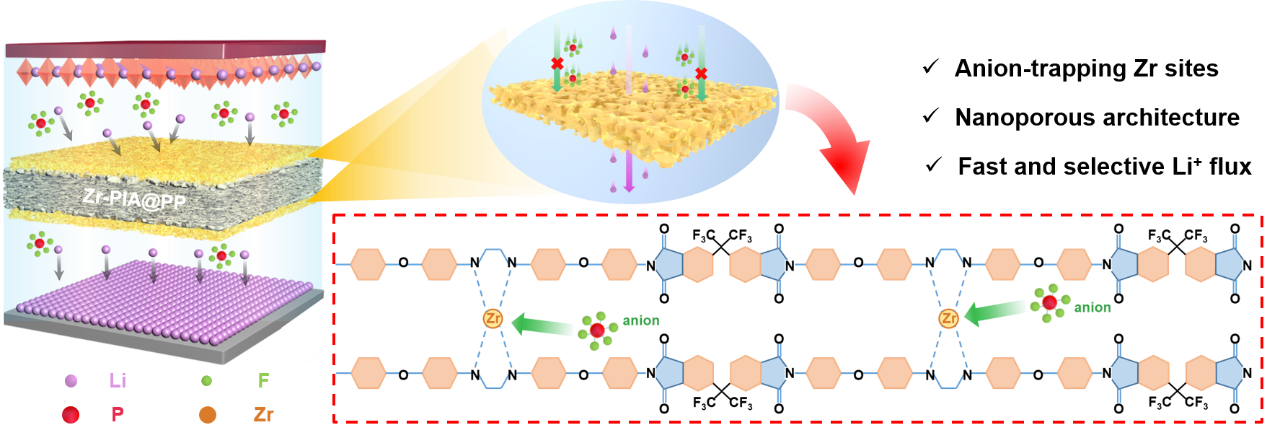 图1:单原子锆配位聚酰亚胺气凝胶复合隔膜的结构示意图