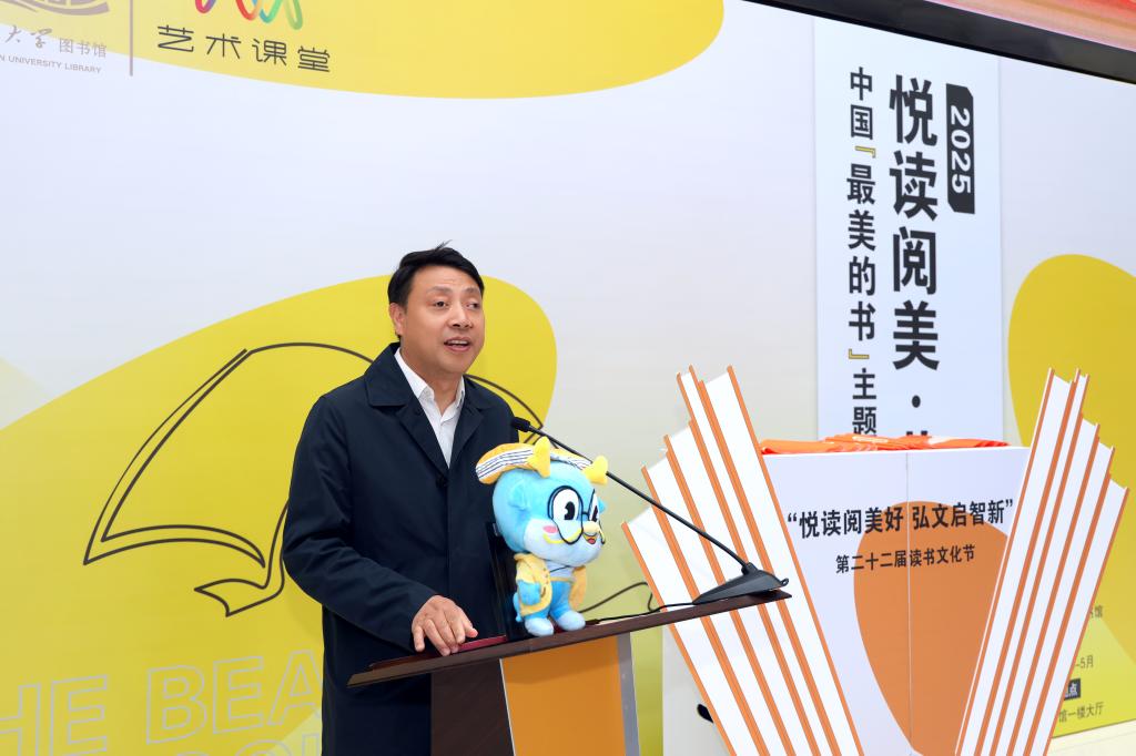 陈敬华介绍了2025年度读书文化节精品活动。他强调,在电子阅读日益普及的当下,图书馆特别策划“悦读阅美 艺览华章——中国·最美的书”主题展系列活动,旨在通过挖掘与活化精品馆藏资源,推动校园美育与阅读文化的深度融合,激发师生对纸质阅读的热情,吸引更多师生深入了解和利用馆藏优质图书,引导他们领略书籍之美、感受阅读魅力,推进书香启智润心。