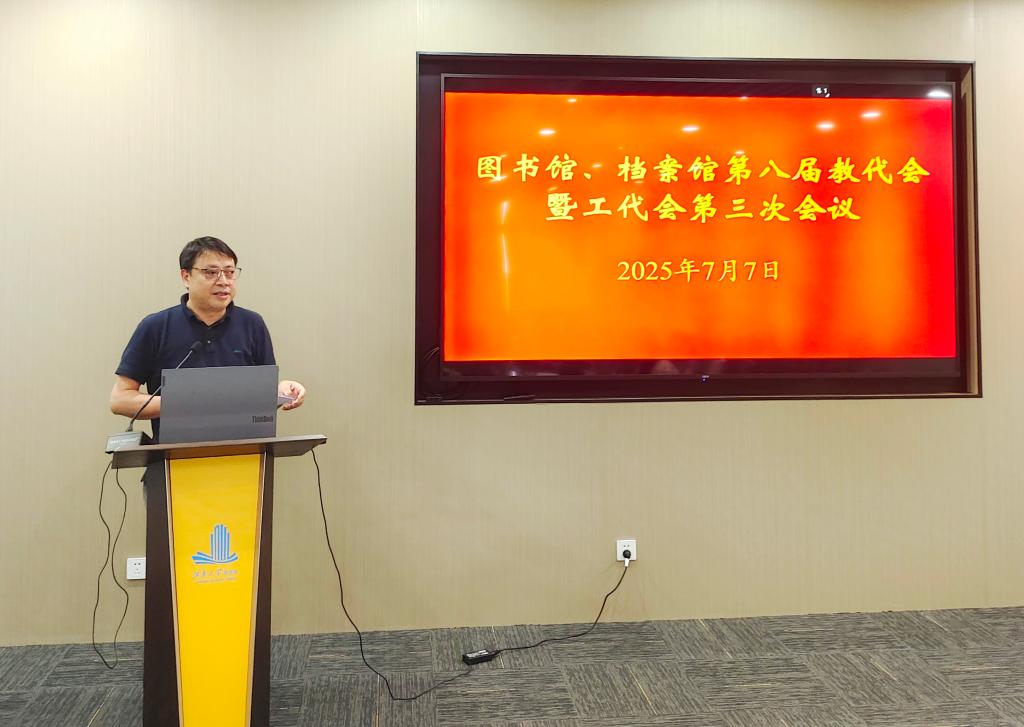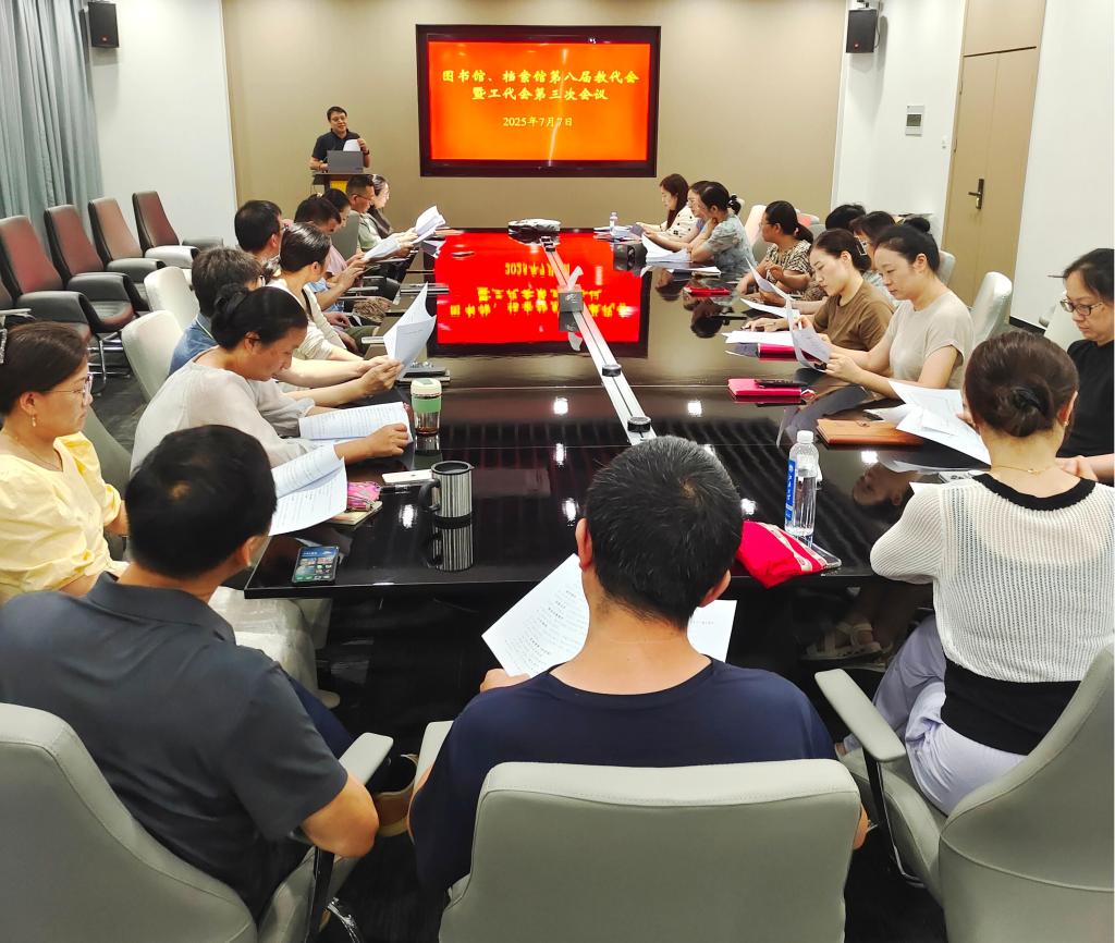 7月7日下午,图书馆、档案馆第八届教代会暨工代会第三次会议在图书馆1013会议室召开,审议《图书馆、档案馆教职工年度考核办法》。会议由分工会主席江惜春主持。
