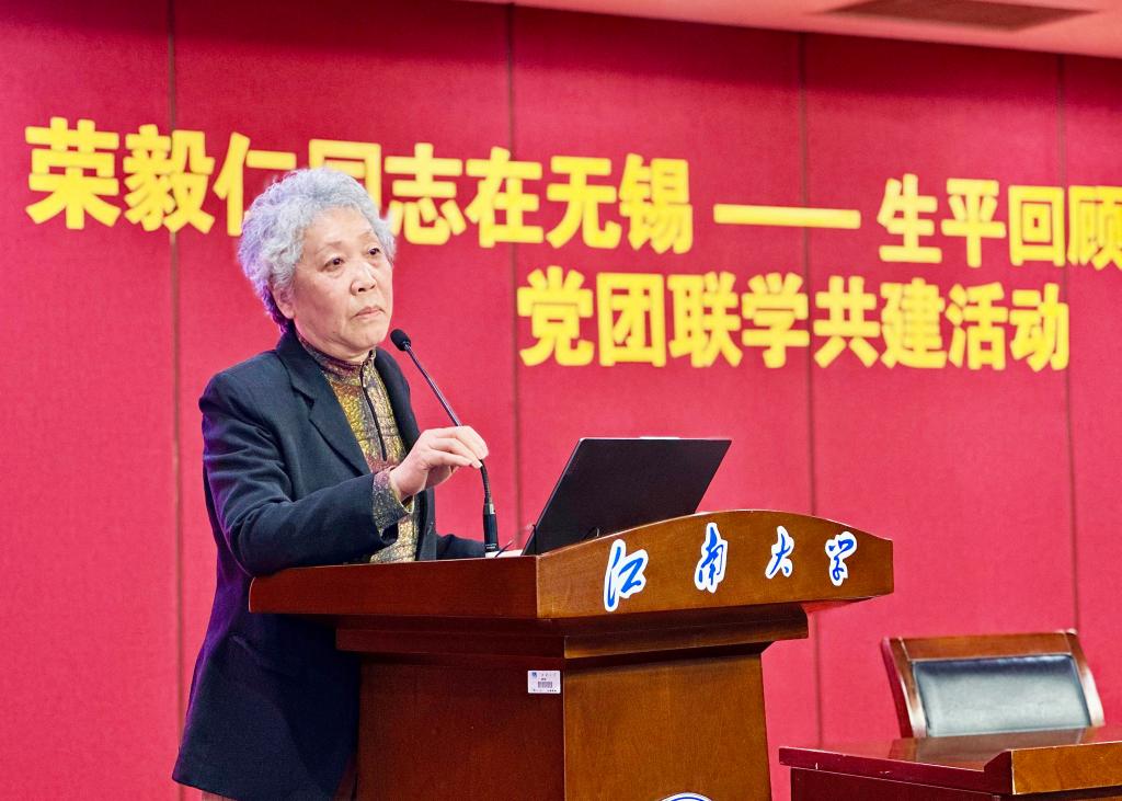 王武深情分享了她与荣毅仁同志间的珍贵会面与温暖细节。她回忆了荣老为国奔忙、为民操劳的赤诚风范,还讲述了荣毅仁同志关心老友、病重仍心系江南大学发展等故事,让大家近距离读懂了荣毅仁同志谦逊质朴、心系教育、平易近人、实干担当的崇高品格。最后,她寄语全体学子,要从荣毅仁同志的事迹中汲取精神力量,既要有心怀“国之大者”的格局与担当,也要锤炼“术业专攻”的本领与匠心;既要成为“大气”之人,也要成为“大器”之人,把青春奋斗融入强国建设、民族复兴伟业之中。