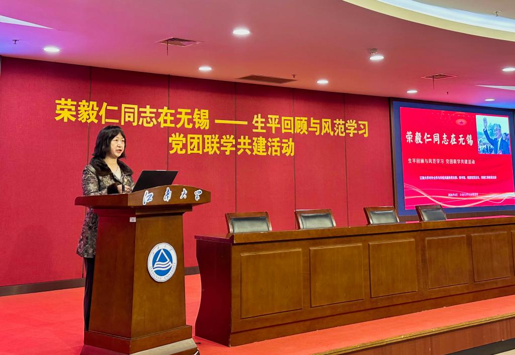 春风润江南,薪火照初心。4月伊始,江南大学对外合作与市校共建处党支部,图书馆、档案馆党总支,荣毅仁特称团支部在江南大学公益图书馆联合举办“荣毅仁同志在无锡——生平回顾与风范学习”党团联学共建活动,重温荣毅仁同志光辉生平,学习其崇高风范,引导党员、干部坚定理想信念、激励团员青年赓续红色血脉,勇担时代使命。江南大学原副校长王武、党委宣传部副部长俞立峰、校团委副书记任轶博、生工学院分团委书记周春江、食品学院学工办副主任吴爽、辅导员穆元炜,对外合作与市校共建处和图书馆、档案馆全体教职工,食品学院、生工学院荣毅仁特称团支部全体同学参与活动。活动由图书馆、档案馆党总支书记李凤梅主持。