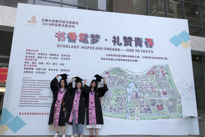 短短月余,图书馆与档案馆推出的毕业季系列活动得到了广大毕业生的积极响应!栀子花开的季节,骊歌响起,挥手分别的时刻,毕业生陆续踏上自己新的征程。在这即将迎来新中国七十华诞的隆重日子里,江南大学图书馆与档案馆以热情的服务诚挚地祝愿全体2019级毕业生前程似锦,开启辉煌人生!