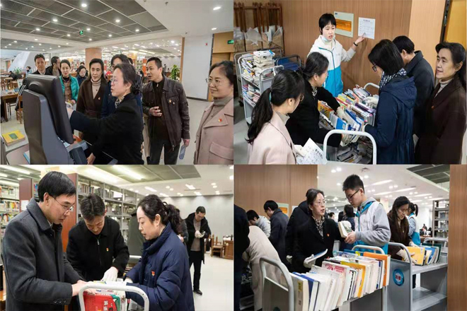 3月5日下午,为践行雷锋精神,弘扬雷锋文化,校党委常委、党委组织部部长张影陆,机关党委书记朱新伟,党委组织部副部长周雪晖、耿向阳带领党委组织部、党校办公室、机关党委党支部来到图书馆开展志愿服务活动。