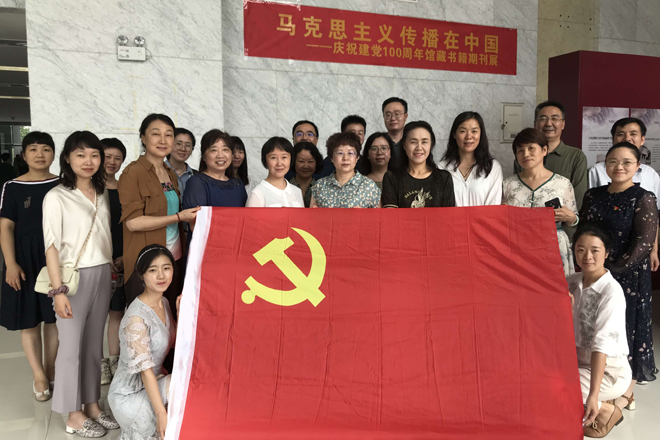 交流结束后,大家还一同到图书馆一楼西大厅参观了“‘马克思主义传播在中国’——庆祝中国共产党建党100周年馆藏书籍期刊展”,通过图展和实物展,全面了解马克思主义中国化、大众化的历史进程。