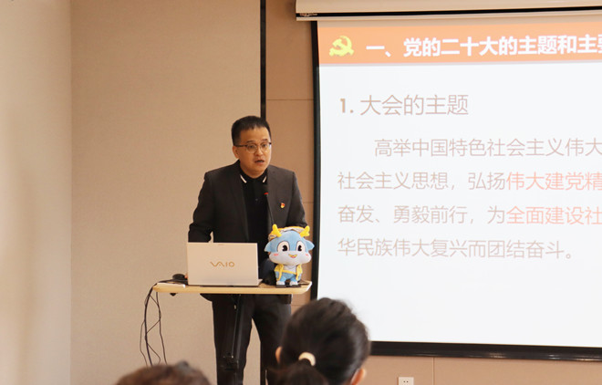 为全面深入学习贯彻党的二十大精神,切实把广大职工的思想和行动统一到党的二十大精神上来,12月6日下午,图书馆与档案馆在B区三楼鼋阅共享空间举办党的二十大精神专题学习会,邀请党委宣讲团成员、马克思主义学院唐忠宝教授作题为《以中国式现代化全面推进中华民族伟大复兴——学习贯彻党的二十大精神》专题报告。图书馆与档案馆中心组成员、全体党员、部主任、教职工代表参加,报告会由党总支书记曹瑛主持。