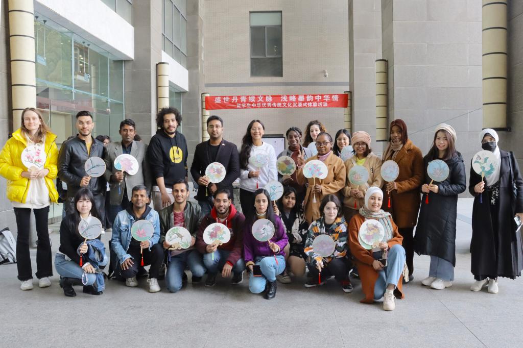 留学生集中展示团扇绘画作品