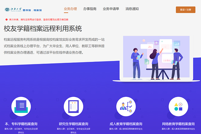 为满足广大校友对档案利用的迫切需求,档案馆深入推进“我为师生办实事”项目,在前期档案资源数字化建设基础上,经过近半年的调研、开发、测试和修改,于建校65周年之际,正式启用了“江南大学校友学籍档案远程利用系统”。