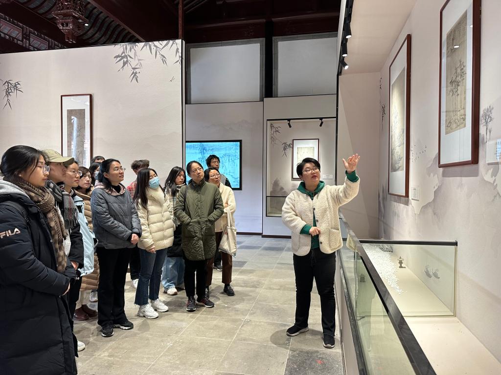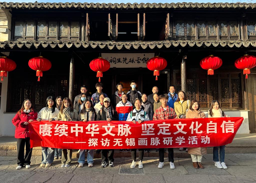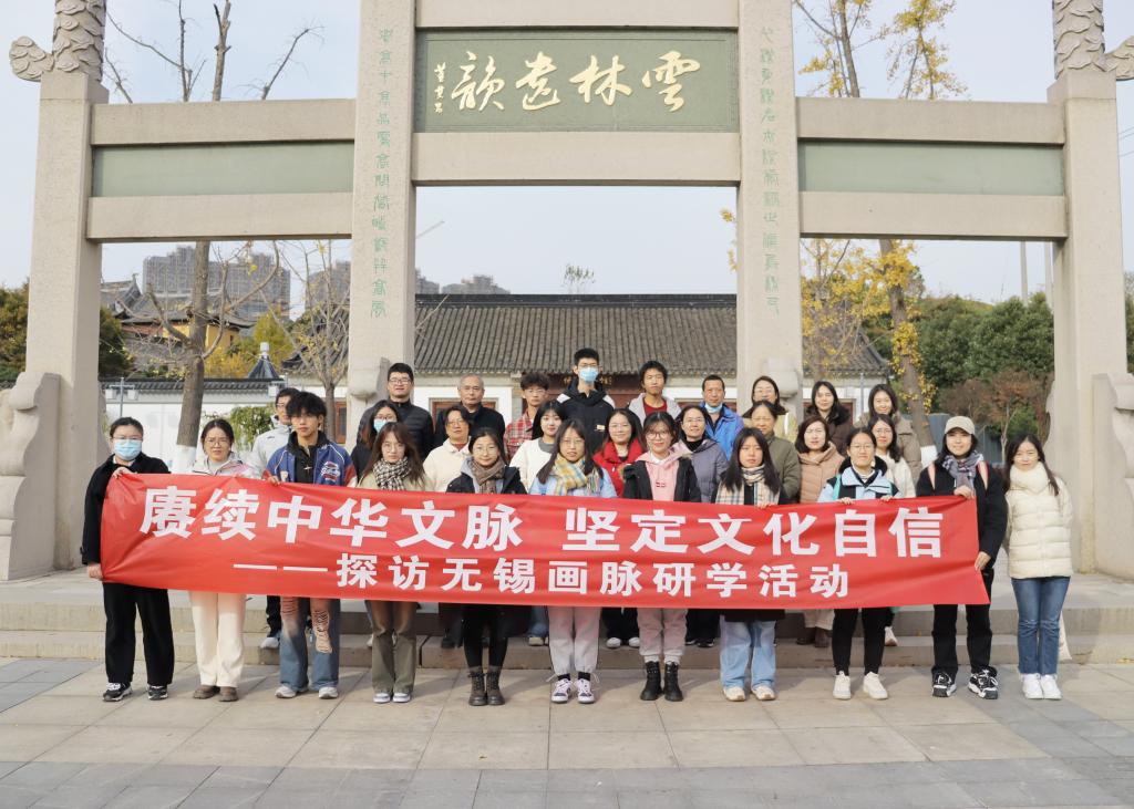 为深入学习贯彻习近平文化思想,推动中华优秀传统文化传承,进一步放大“中国历代绘画大系”巡展效应,11月30日下午,图书馆组织开展了“赓续中华文脉 坚定文化自信”——探访无锡画脉研学活动,前往“元四家”之一的无锡籍画家倪瓒纪念馆和宗祠,深入了解倪瓒文化,探寻江南文脉。图书馆副馆长孙颖带领参与中国历代绘画大系·高校巡展(江南大学)的学生志愿者和图书馆阅读推广专班的老师参加了此次活动。