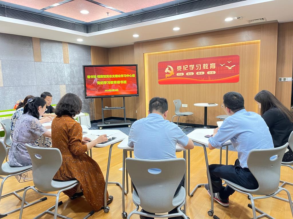 在交流讨论环节,大家表示,校党委书记吴正国为师生党员上的纪律党课,是一堂意义深刻、内涵丰富的党纪学习教育课,指导我们用心学纪筑牢信仰之基,准确知纪守住规矩底线,对标明纪涵养清廉正气,严格守纪激发担当作为。图书馆作为学校文化涵育阵地,要紧扣党纪学习教育目标要求,积极践行“第二个结合”,立足馆藏资源与空间载体优势,教育引导党员从党纪学习中汲取清醒坚定,从党的光荣传统中汲取纪律滋养,从中华优秀传统文化中汲取廉洁力量,通过党纪学习教育的淬炼洗礼,把增强党性、严守纪律、砥砺作风融入日常、化为习惯,推动他律向自律转化、自律向自觉升华。