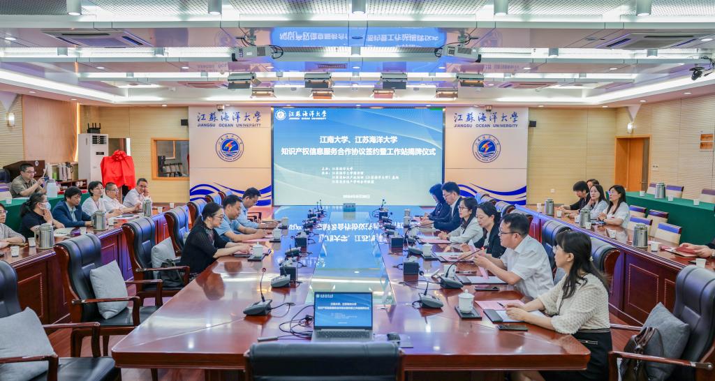 5月30日,江南大学与江苏海洋大学知识产权信息服务合作签约暨工作站揭牌仪式在江苏海洋大学举行。江苏海洋大学党委常委、副校长金芙蓉,江南大学图书馆馆长、高校国家知识产权信息服务中心主任陈敬华,连云港市知识产权局副局长马盈、江苏海洋大学图书馆党总支书记艾华,江苏海洋大学科学技术处处长戴红伟、文法学院党委书记兼江苏省知识产权培训(江苏海洋大学)基地常务主任魏范青,江南大学图书馆副馆长顾烨青、高校国家知识产权信息服务中心副主任张群等人出席了活动。
