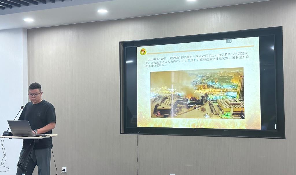 薛晶为参训人员带来了一场生动且实用的消防安全知识讲座。他结合近年来高校校园发生的典型火灾案例,深入分析了校园火灾的风险因素及预防措施,并详细讲解了火灾的常见起因及危害、火场逃生的自救小妙招及注意事项、消防灭火设施的正确使用、组织人员疏散的方法等内容。薛晶的讲座内容丰富、易于理解,对图书馆、档案馆的消防安全工作具有重要的实践指导意义。