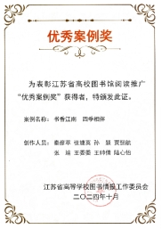 本次阅读推广优秀案例征集活动由江苏省高等学校图书情报工作委员会主办,旨在深入贯彻落实党的二十大精神,推动全民阅读活动深入开展,特别是提升大学生阅读质量,促进校园文化建设,展示各图书馆在阅读推广方面的创新举措、特色活动、有效模式等。经各高校图书馆申报推荐,专家评审,共评选出62项“优秀案例奖”,其中18个精选案例被刊载于《中国出版传媒商报》,我校3项案例均获选刊登。