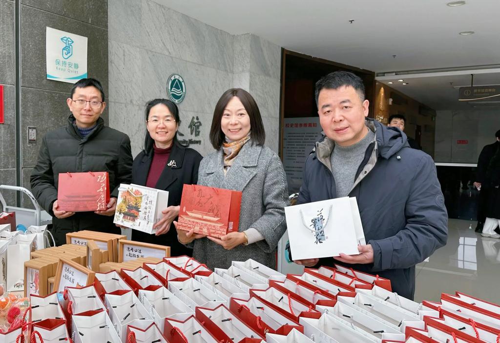 图书馆精心筹备、周密安排,在一楼大厅布置考研祝福展板,并为备战考研的同学准备了寓意深远的上岸礼物。除专属定制的印有“上海文庙、江南贡院、孔庙、国子监、嵩阳书院、白鹿洞书院、岳麓书院、应天书院”等古代学府文化元素图案的考研助力大礼包外,还准备了励志文创相框、好柿发生挂件、图书馆特色四季卡套及鼋元手机支架等小礼物,每一份礼物都承载着图书馆对考研学子深深的祝福与期待。