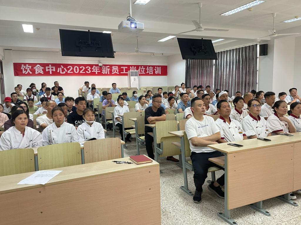 为进一步贯彻落实《食品安全法》,强化食品从业人员的安全意识,履行安全操作规范,切实做好我校食品安全保障工作。9月28日下午,后勤管理处饮食中心在二教楼2C209教室举办了新入职人员岗位培训,培训由饮食中心三食堂现场主管赵彤结合日常工作实际现身说法,饮食中心班子成员张明亮、徐阿毛以及学校社会餐饮服务企业现场负责人、新入职员工共120余人参加。培训由朱朝辉科长主持。