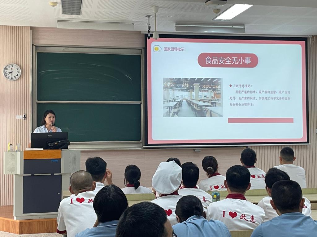 赵彤以《高校食品安全知识》为主题,结合我校餐饮工作特点,以实际工作中发生的典型案例为切入点,从8S精细化管理标准、食品安全概述、食品安全操作规范、生产加工操作要求、日常服务行为准则等方面进行了细致深入的讲解。培训过程中还就食品安全相关问题进行现场互动,参训员工纷纷表示受益匪浅,对中心的管理制度有了更清晰的理解,进一步牢固树立了食品安全、生产安全和消防安全意识。