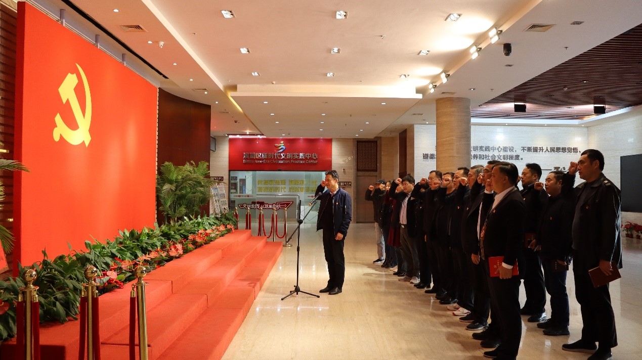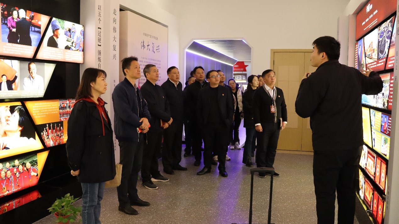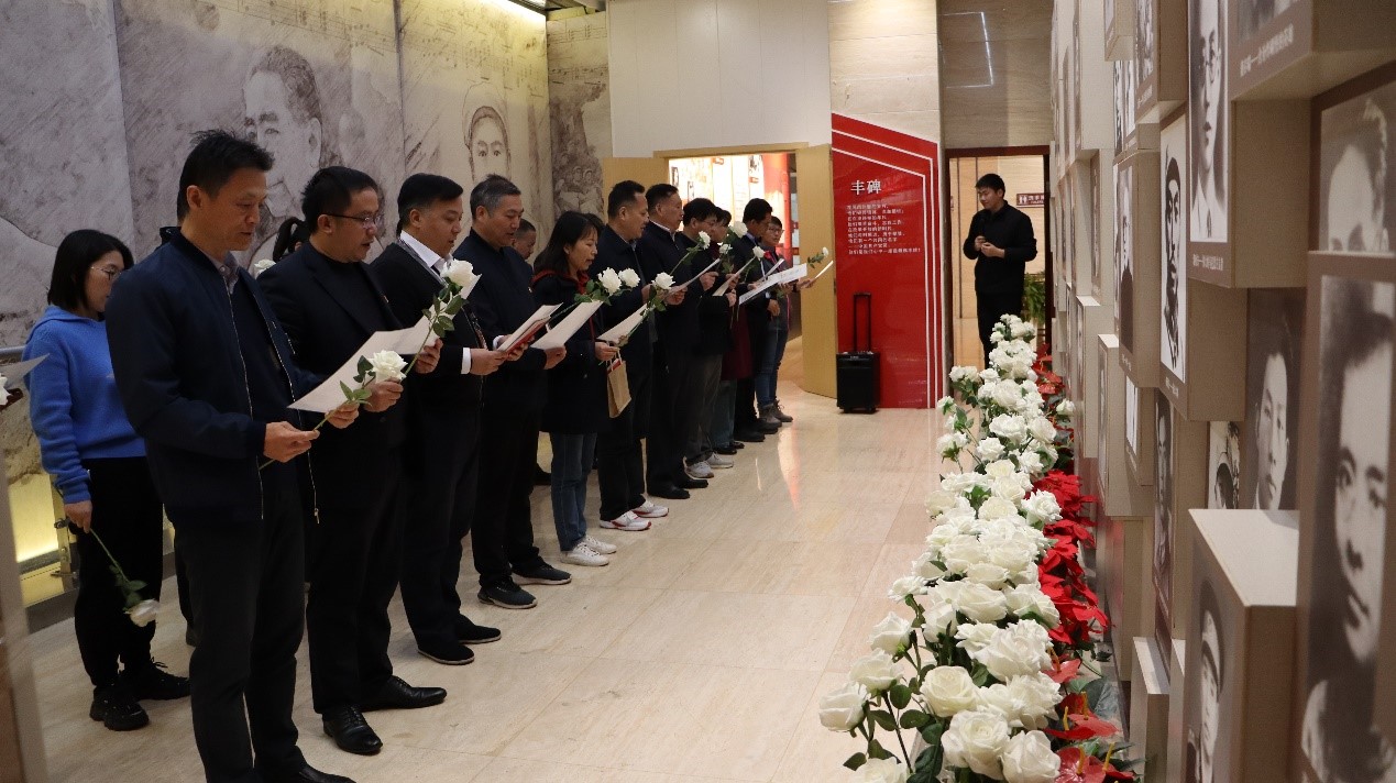 集体参观环节,与会人员面向党旗,重温入党誓词,使命感和责任感油然而生。在讲解员引导下,以中国共产党红色精神为主线,参观了起航、星火、烽烟、黎明、奋斗等8个专题展厅,重温红船精神、延安精神、井冈山精神、西柏坡精神、载人航天精神等中国共产党的光辉历程,在红色精神的传承中汲取力量,坚定信念,并向革命先烈敬献鲜花,缅怀先辈志士,凝聚初心使命。