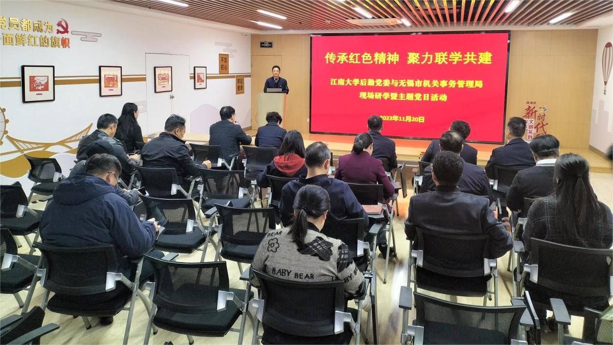 11月20日下午,江南大学后勤党委与无锡市机关事务管理局携手共建,在滨湖党建馆开展了“传承红色精神 聚力联学共建”现场研学暨主题党日活动。后勤党委全体中层干部、各党支部书记、无锡市机关事务管理局党支部党员共25人参加活动,活动由后勤党委书记朱新伟主持。