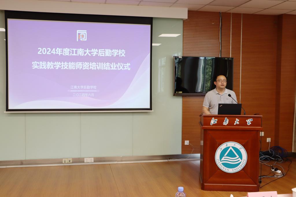 为全面总结后勤学校教员培训工作的成果,6月14日下午,江南大学后勤学校2024年度实践教学技能师资培训结业仪式在文浩馆311举行。本期培训班由学校教务处和后勤党委联合举办,旨在提升后勤学校教师队伍的实践教学技能水平。后勤管理处处长吴光明、教师发展中心主任兼教务处副处长孙子文等领导出席活动,后勤党委50余名教员参加了本次培训,会议由后勤管理处副处长季王飞主持。