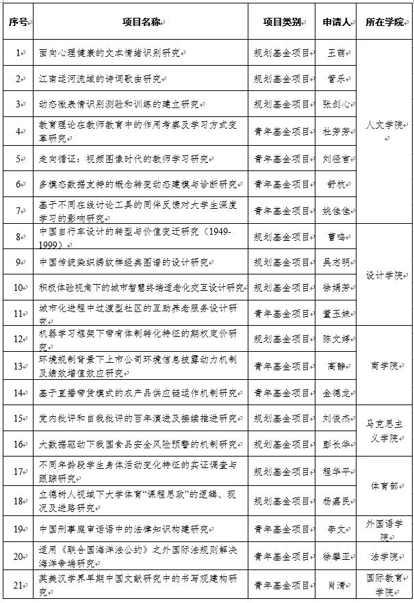 江南大学2021年度教育部人文社会科学研究一般项目立项名单一览表