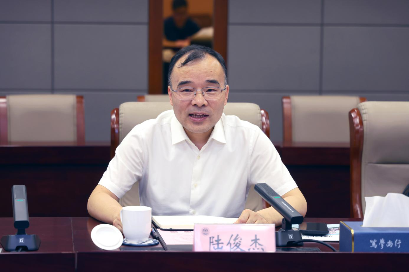 堵国成对陆俊杰一行来校指导表示热烈欢迎。他感谢南通大学长期以来对学校工作的支持,并简要介绍学校基本情况、学科发展和人文社科发展情况。他期待双方以此次调研为契机,深化交流合作,在人文社科领域向下扎根、向上结果,立足时代、进位谋远,取得一系列标志性成果,进一步推动人文社科高质量发展。