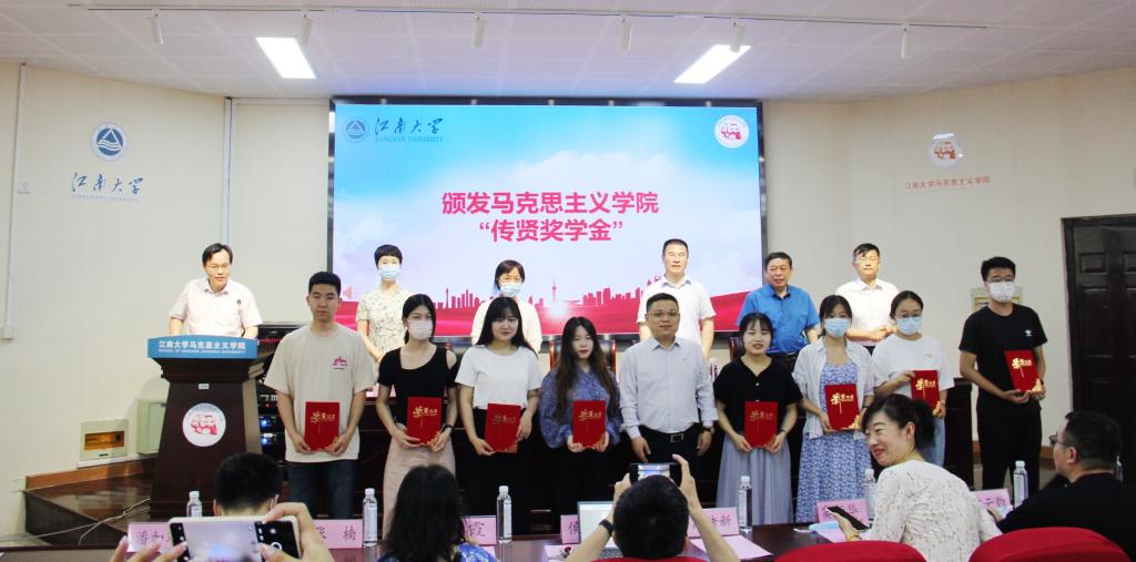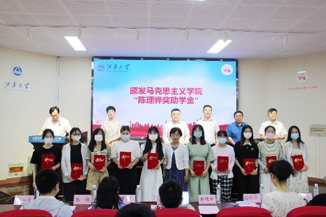 在颁奖环节,刘焕明、徐玉生分别宣读了马克思主义学院“传贤奖学金”“陈理骅奖助学金”和“江苏中超集团奖学金”获奖人员名单。侯启贤、李凤梅、刘广忠依次为获奖者颁发获奖证书并合影留念。