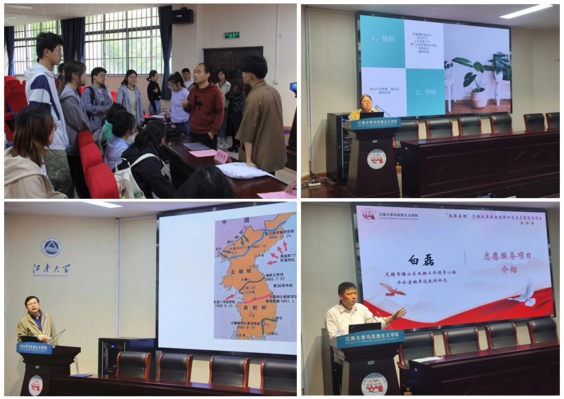5月7日下午,“致敬英雄——无锡市抗美援朝老兵口述史”志愿服务项目启动仪式暨志愿者培训动员大会在马克思主义学院启贤报告厅举行。锡山区双拥工作领导小组办公室主任刘人大、马克思主义学院党委书记李凤梅、江南文化研究院副院长刘大禹及英特派铂业有限公司、江南晚报和无锡广电新闻的相关人员出席了此次会议,马克思主义学院教师代表、思政专业全体本科生和40名项目志愿者到场参加。会议由院党委副书记兼副院长郑丹丹主持。