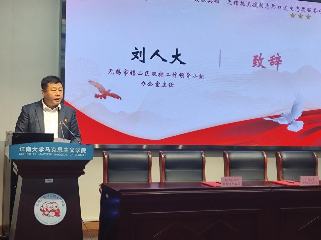 李凤梅在致辞中带领大家重温了习近平总书记在“纪念中国人民志愿军抗美援朝出国作战70周年大会”上的讲话,号召同学们学习中国人民志愿军的爱国主义、革命英雄主义、革命乐观主义、革命忠诚和国际主义精神。刘人大在讲话中表示,这是一项与时间赛跑、为后代负责的工作,军、校、企同心携手行动,为无锡抗美援朝老兵留下这一珍贵、鲜活的历史资料具有重大意义。