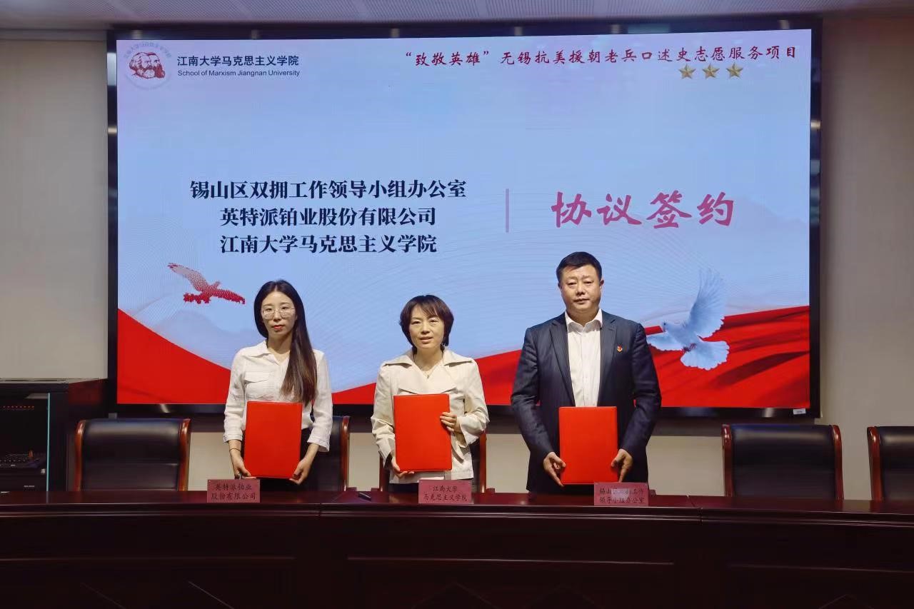 会上,锡山区双拥工作领导小组办公室、英特派铂业有限公司与江南大学马克思主义学院共同签署了项目合作协议书。李凤梅和刘人大为担任志愿服务项目指导老师8位同志颁发了聘书。马克思主义学院教授汪春劼作为指导老师代表为大家带来“中美在朝鲜的较量”的要闻。