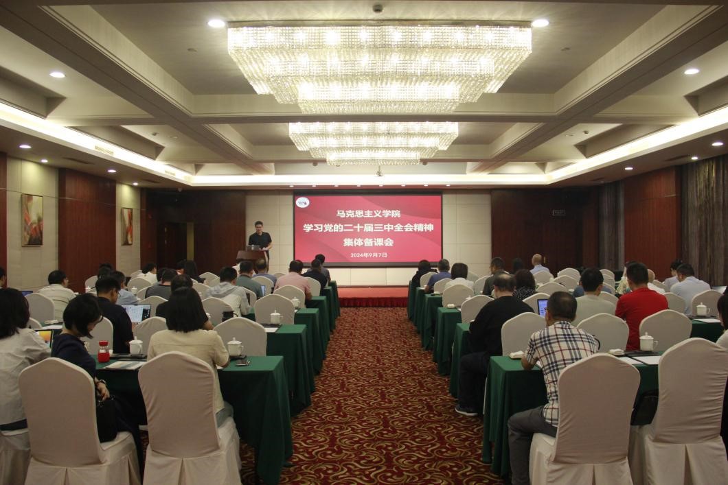 马克思主义学院院长侯勇以《关于推进新时代马克思主义学院高质量发展及思政课建设内涵式发展的意见》为主题做了专题报告,详细阐述了学习贯彻党的二十届三中全会精神,推动学院内涵式建设与高质量发展,并提出推动学院发展的“八大工程”,希望通过政策引导和制度建设带动学院进一步发展。各分管领导在备课会中回应教师在教学、科研、社会服务等方面存在的困惑,研讨了学院新学期工作思路和举措。各教研部主任汇报了落实党的二十届三中全会精神进课堂的具体措施,并围绕新学期教学工作安排、教学改革思路等方面进行了经验交流。