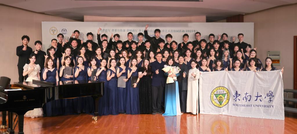 3月28日晚,2025年江苏省高雅艺术进校园活动——东南大学SEU室内合唱团带来的“梅庵流韵”原创合唱套曲音乐会在北区大学生活动中心音乐厅精彩上演。