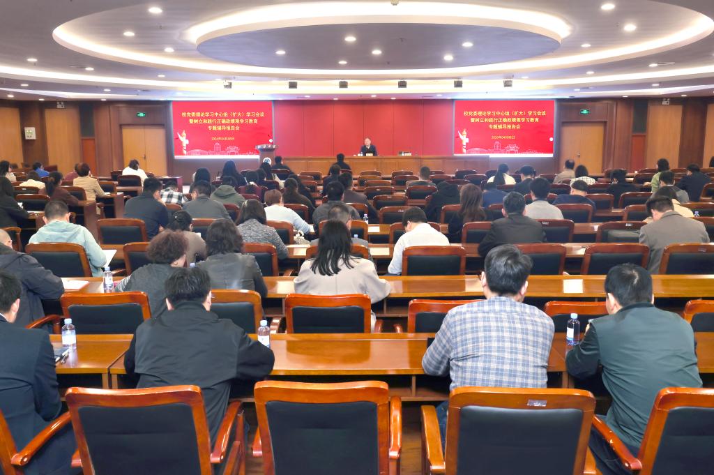 4月8日下午,校党委理论学习中心组(扩大)学习会议暨树立和践行正确政绩观学习教育专题辅导报告会在图书馆510报告厅召开,南京师范大学王刚教授作专题辅导报告。会议由校党委常委、副校长戴月波主持,校党委理论学习中心组、二级党委(党总支)理论学习中心组成员,教师党支部书记代表参加报告会。