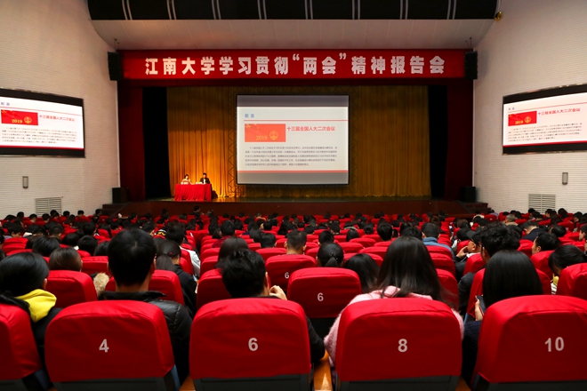 报告会上,陈丽芬从大会概况、大会议程、习近平总书记两会期间重要讲话精神、政府工作报告、全国人大常委会工作报告、“两高”工作报告、《外商投资法》、江苏省代表团主要活动等方面对“两会”主要精神进行了传达和解读,并围绕自身履职情况,畅谈此次参会的感悟和心得。她指出,今年是新中国成立70周年,是全面建成小康社会、实现第一个百年奋斗目标的关键之年。2019年全国两会的胜利召开,对于坚定中国信心、凝聚奋斗力量具有十分重要的意义。传达学习好、贯彻落实好“两会”精神,是当前的一项重要政治任务,要结合实际,把“两会”精神落实到具体的行动上。江苏阳光集团有限公司与江南大学有着长期坚实的合作基础,希望双方能在智能制造、信息技术、大数据分析等新兴领域加强战略合作,构建有效交流机制,以自主创新为第一动力,加强核心技术的攻关。希望学校加大力度培养高素质创新人才,推动经济社会高质量发展。