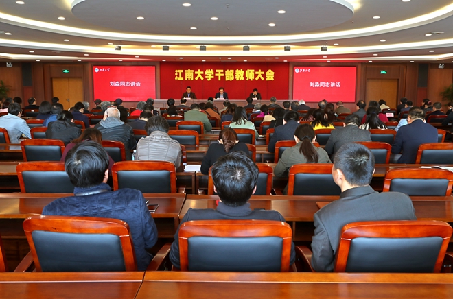 4月1日下午,我校在图书馆五楼报告厅召开干部教师大会,宣布中共教育部党组关于江南大学党委副书记、纪委书记的任职决定。校长、党委副书记陈坚主持会议。