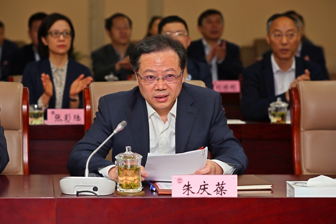 校党委书记朱庆葆主持会议并汇报学校党建与思政工作