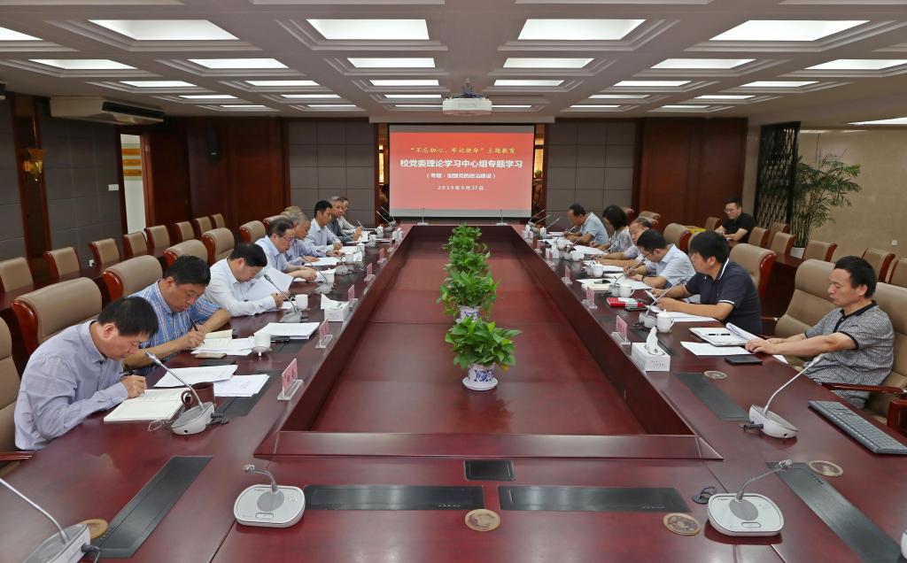 校党委副书记戴月波、副校长徐岩、副校长顾正彪、党委宣传部部长倪松涛围绕党的政治建设和“不忘初心、牢记使命”主题教育的重要性、加强理论学习的重要性、防范政治风险和加强意识形态工作、强化斗争意识和责任担当等作了交流发言。