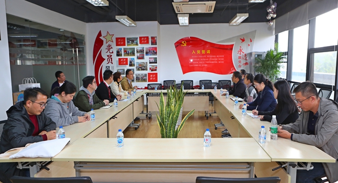 在讲解员的带领下,一行人首先参观了位于公司一楼展示厅的国家网络视频数据库平台。国家网络视频数据库平台是央视网构建“一云多屏,全球传播”体系的核心“云”建设,也是媒体融合的重要基础平台。通过应用云计算、大数据等最新技术,有效实现了海量视频集约化、制作流程一体化、资源共享便捷化、内容产品融媒化、平台应用智慧化。支部成员在公司重点打造的“博闻大数据”品牌演示机下驻足,认真聆听该大数据品牌在智舆情、新策划和大视频三个细分领域的功能效用,并且联系我校宣传工作实际积极提问交流。随后,双方在公司党建工作室召开座谈会,就党务、新闻宣传、意识形态监控等方面的工作进行了深入地交流研讨。