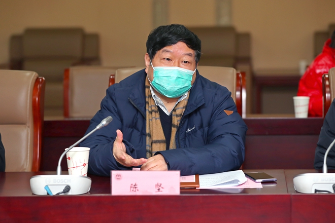 陈坚首先感谢无锡市委市政府以及市有关部门对学校疫情防控工作的重视、指导和支持。他强调,学校要把疫情防控作为当前首要的工作抓细抓实,严格按照教育部和无锡市委市政府的统一部署,确保各项工作要求和任务部署落到实处。他表示,尽管学校面临着人员组成复杂,群体性活动较多等具体困难,但仍将严密配合地方政府开展疫情防控工作,保质保量完成疫情防控任务。希望无锡市能进一步落实杜小刚市长来校检查时提出的“墙外标准、墙内执行;墙内困难,墙外支持”工作要求,进一步加大支持力度,为江南大学后续疫情防控工作提供更多条件保障和专业指导。
