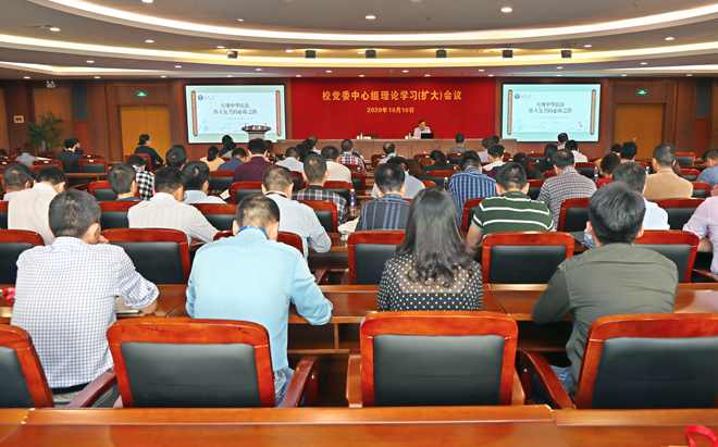 10月10日下午,校党委中心组理论学习(扩大)会议在图书馆五楼报告厅召开。会议邀请武汉大学原党委副书记、国务院学位委员会马克思主义理论学科评议组成员、中央马克思主义理论研究与建设工程首席专家骆郁廷教授作了题为《实现中华民族伟大复兴的必由之路——学习<习近平谈治国理政(第三卷)>》的专题报告。在校校党委中心组成员、全体中层干部参加了会议。校党委书记朱庆葆主持会议。