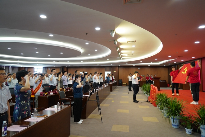 校党委副书记、纪委书记刘淼带领全体党员宣誓
