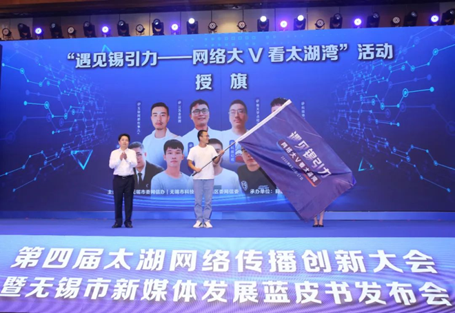 周锡生、胡正荣、刘伟、许立新分别进行致辞。近年来,在迈向网络强省的新征程上,江苏坚持以习近平新时代中国特色社会主义思想为指导,围绕中心、服务大局,加强网上正面宣传,创新传播方式方法,把经济发展的支撑优势、技术应用的先发优势、思路理念的开放优势转化为网络强省建设的领先优势。无锡顺应互联网发展大势,加快推动媒体融合发展,勇于创新、变革,推进理念、内容,加强了体制机制等全方位创新,各类新媒体在各自领域正面发声、主动作为,为打造网络传播无锡品牌汇聚了强大驱动力量。蔡文煜为“遇见锡引力—网络大V看太湖湾”活动授旗,分享小康社会里的幸福感、获得感,解锁城市背后的高质量发展密码。