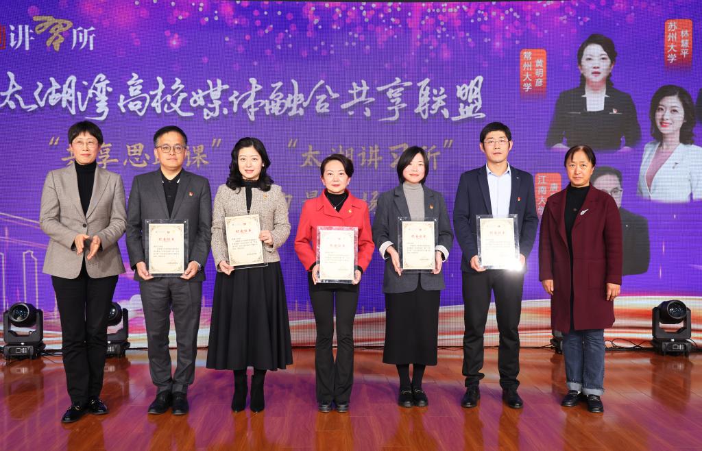 近日,由江南大学与无锡市委网信办共同主办,我校党委宣传部、融媒体中心以及党委学生工作部、马克思主义学院联合承办的太湖湾高校媒体融合共享联盟“共享思政课”暨“太湖讲习所”文化自信与青年力量专场活动在北活音乐厅举行。江南大学党委副书记戴月波出席活动并致辞。活动由马克思主义学院副教授孙越主持。
