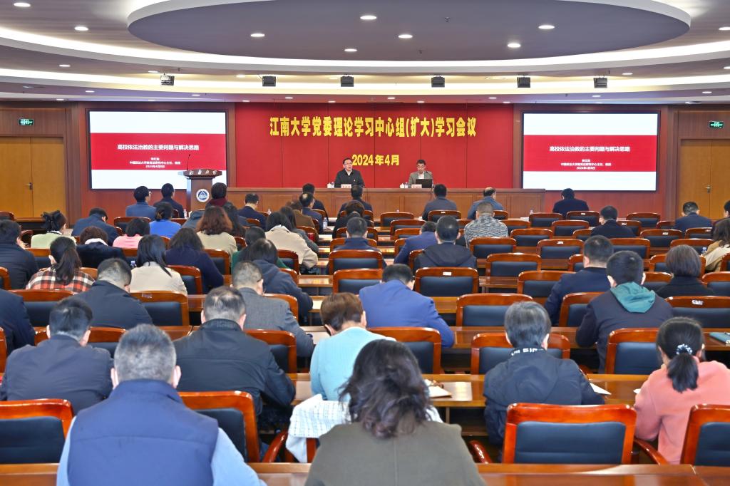 4月8日上午,学校党委理论学习中心组(扩大)学习会议在图书馆5楼报告厅召开,深入学习党的二十大精神和习近平法治思想,强化党员干部法治思维,全面提升依法治教、依法办学、依法治校能力,推进学校治理体系与治理能力现代化。校党委书记吴正国主持会议。校党委理论学习中心组、二级党组织理论学习中心组全体成员参加了学习会。