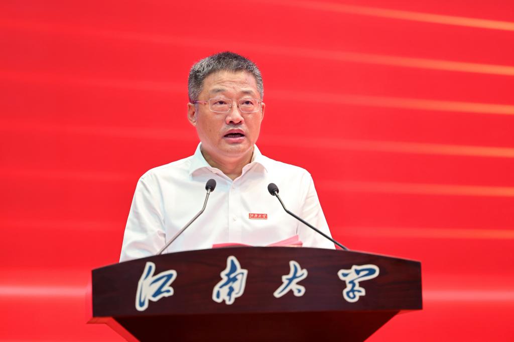陈卫代表全校师生员工,向来自世界各地的本科新生表示热烈欢迎,并以《燃青春 向未来》为题讲授了开学第一课。他希望同学们问道青春,以立志求真燃信仰之光;问学江南,以博学慎思燃创新之火;问心未来,以坚毅笃行燃求学之梦。他勉励同学们在强国建设、民族复兴伟业中,做坚定信仰的守望者、勇于创新的探索者、胸怀祖国的建设者,在更好支撑和服务中国式现代化实践中镌刻璀璨未来。