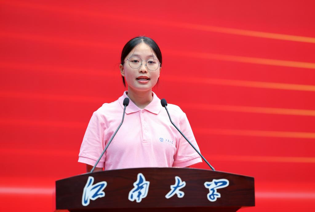 各学院院长(书记)为新生送上的开学寄语,饱含着学院、老师对新生们的谆谆教诲和殷切期望,为新生们的大学生涯指引方向、注入动力。生物工程学院教授、博士生导师、未来食品科学中心副主任周景文代表全体教师发言,他鼓励同学们勤勉笃学、立志尚行,立德慎行、修身平心,强健体魄、自洽自信,以饱满的热情、坚定的信念、不懈的努力,在实现梦想的道路上勇往直前,成长为社会的栋梁之材。机械工程学院2021级本科生林瀚代表全体在校本科生发言,他呼吁学弟学妹们始终保有突破现实和自我桎梏的底气,奋进青春与追求卓越的勇气,笃行当代青年责任与使命的志气,不断积蓄青春力量,保持奋进姿态,立志成为“有为”的江南人。食品学院食品AI卓越创新班李代静同学作为2024级本科新生代表发言,她号召同学们以积极主动之姿、无惧困难之态,探索学术的高度,延展梦想的广度,让个人的梦想融入国家发展的大潮,共同书写新时代的辉煌篇章。