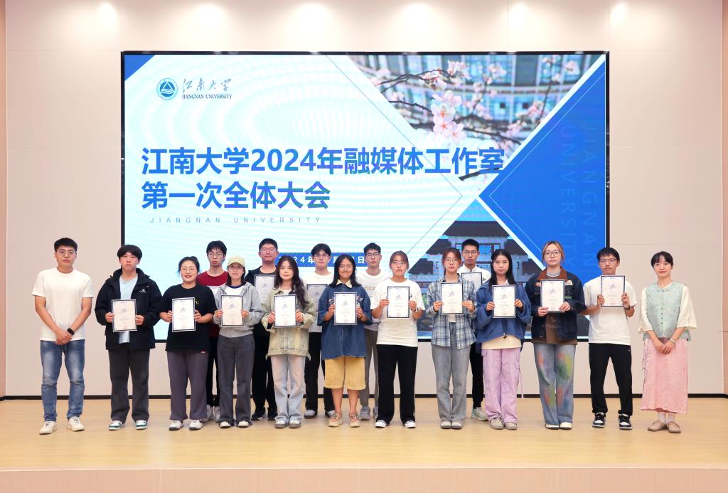 会上,融媒体工作室指导老师张铁根宣读了江南大学2024年融媒体工作室学生骨干名单,并分批颁发了2023-2024年融媒体工作室学生骨干聘书和优秀干事荣誉证书。融媒体工作室主任室范丽丽同学对过去一年主要工作进行总结回顾。融媒体工作室采编部、运营部、摄影部、影视部、办公室、设计部各部门代表以及新干事代表分别发言,总结过去、立足当下、展望未来。