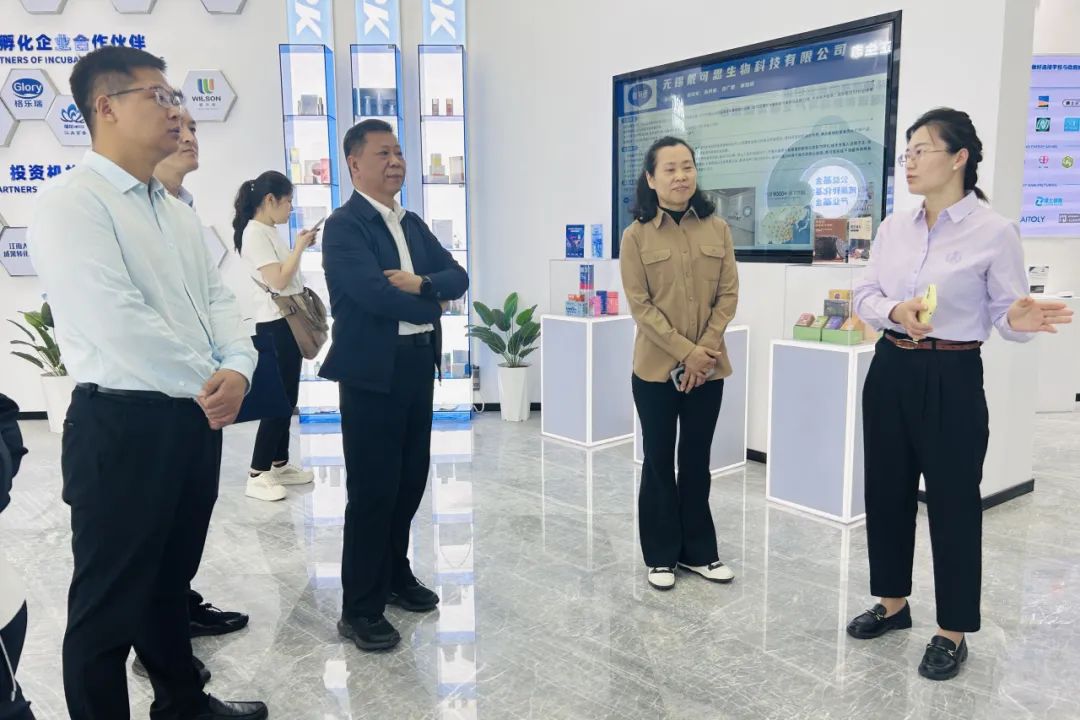 在大学科技园“江苏省概念验证中心(江南大学生命健康领域)”展厅,陈雪梅向李国艳一行系统介绍了大学科技园的发展历程、运营管理、校地共建及政策支持成效,重点阐述了推进科技成果转化、校地合作支撑及企业培育等方面的实践及成果。